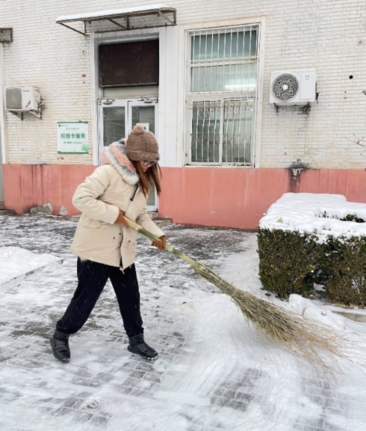 众人拾柴火焰高,经过奋力清扫,学生服务中心附近的积雪积冰情况得到缓解,“铲雪除冰”行动成效显著,道路变得安全畅通,为师生出行开辟了一条洋溢着暖暖温情的安全之路,在冬日严寒中传递着温暖与正能量。